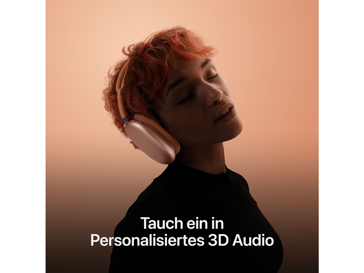 Das ultimative persönliche Over-Ear Hörerlebnis – jetzt in neuen Farben. Die AirPods Max liefern ein beeindruckend detailreiches Hi-Fi Audio für ein einzigartiges Hörerlebnis. Personalisiertes 3D Audio mit dynamischem Head Tracking für Sound, der dich komplett umgibt. Aktive Geräuschunterdrückung auf Pro Level, um unerwünschte Geräusche auszublenden. Transparenzmodus, um dein Umfeld problemlos zu hören. Bis zu 20 Std. Batterielaufzeit mit einer Aufladung. Einfaches Setup und On-Head Erkennung für ein fast magisches Hörerlebnis. Jetzt mit USB-C zum einfachen Laden.