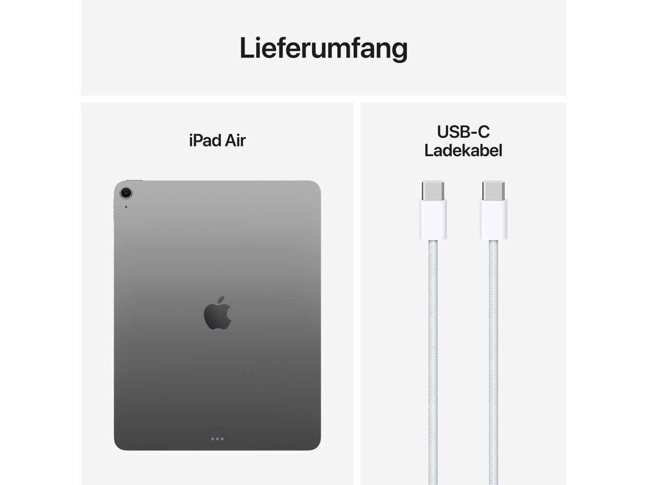 Lieferumfang: 1x Apple iPad Air, 1x USB-C Ladekabel (1m)