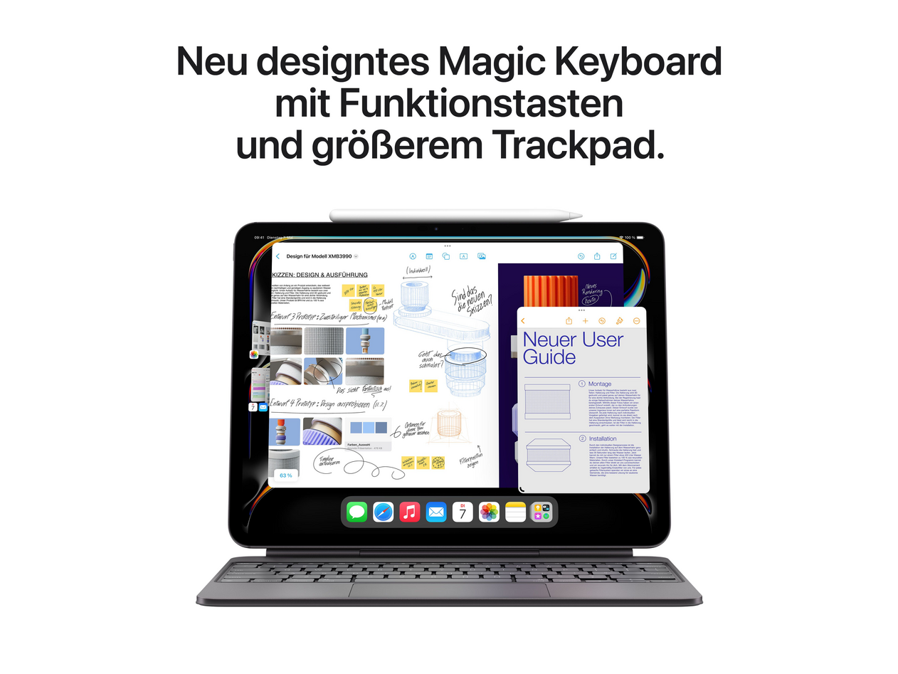 Ultra Retina XDR Display, Tandem OLED, 11" Multi-Touch-Display, Auflösung von 2420 x 1668 Pixeln bei 264ppi, Apple M4-Chip, 9-Core CPU mit 3 Performance-Kernen und 6 Effizienz-Kernen, 10Core GPU, 8 GB RAM, 12 MP Weitwinkel-Kamera, ƒ/1.8 Blende, Bis zu 5x digitaler Zoom, 4K Videoaufnahme mit 24 fps, 25 fps, 30 fps oder 60 fps, 1080p HD Videoaufnahme mit 25 fps, 30 fps oder 60 fps, 720p HD Videoaufnahme mit 30 fps, TrueDepth Kamera mit 12 MP Querformat Ultraweitwinkel, 4Lautsprecher-Audio, Ring aus vier Mikrofonen in Studioqualität für Anrufe, Video und Audioaufnahmen, WLAN 6E (802.11ax) mit 2x2 MIMO5, Simultanes Dualband, Bluetooth 5.3, eSIM Technologie, Digitaler Kompass, WLAN , iBeacon MikroOrtung, Integrierte wiederaufladbare Lithium-Polymer-Batterie mit 31,29 Wattstunden, Bis zu 10 Std. Surfen im Web mit WLAN oder Videowiedergabe