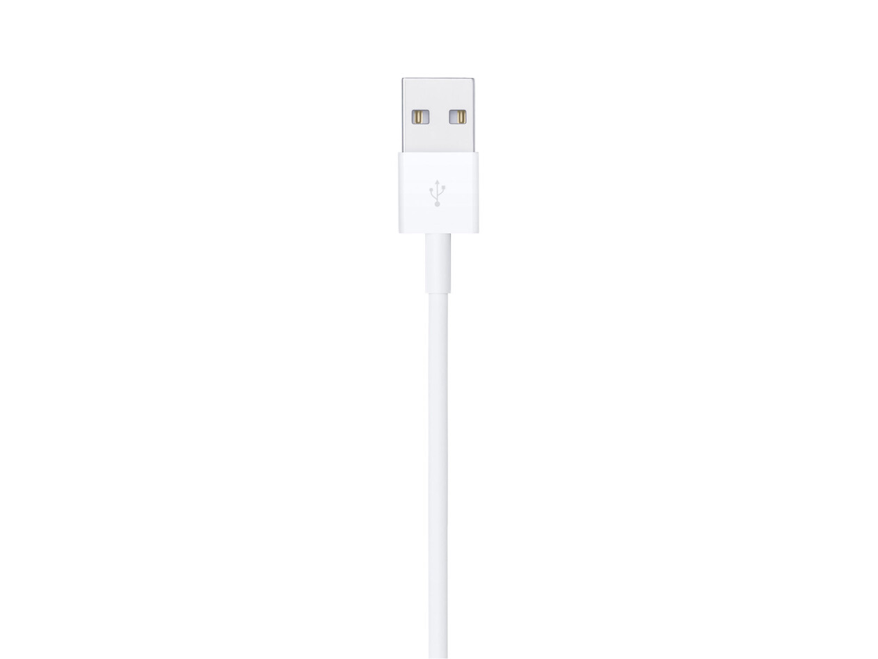 Dieses USB 2 Kabel verbindet dein Gerät mit Lightning Anschluss zum Synchronisieren und Laden mit dem USB Anschluss deines Computers. Oder du kannst es an den Apple USB Power Adapter anschließen, für einfaches Laden über eine Steckdose.