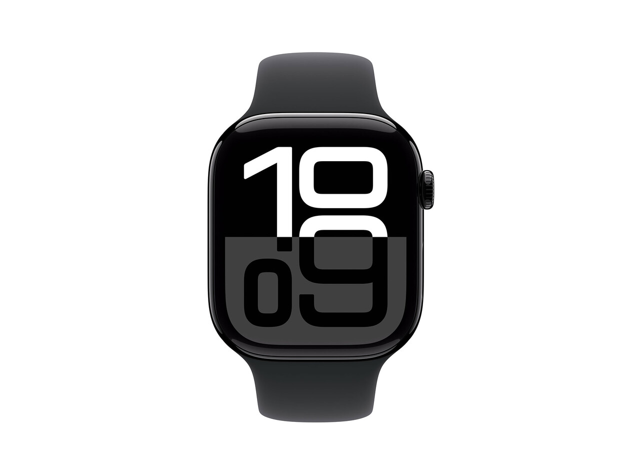 Lieferumfang: Aluminiumgehäuse diamantschwarz, Sportarmband (S/M), Apple Watch magnetisches Schnellladegerät auf USB-C Kabel (1m)