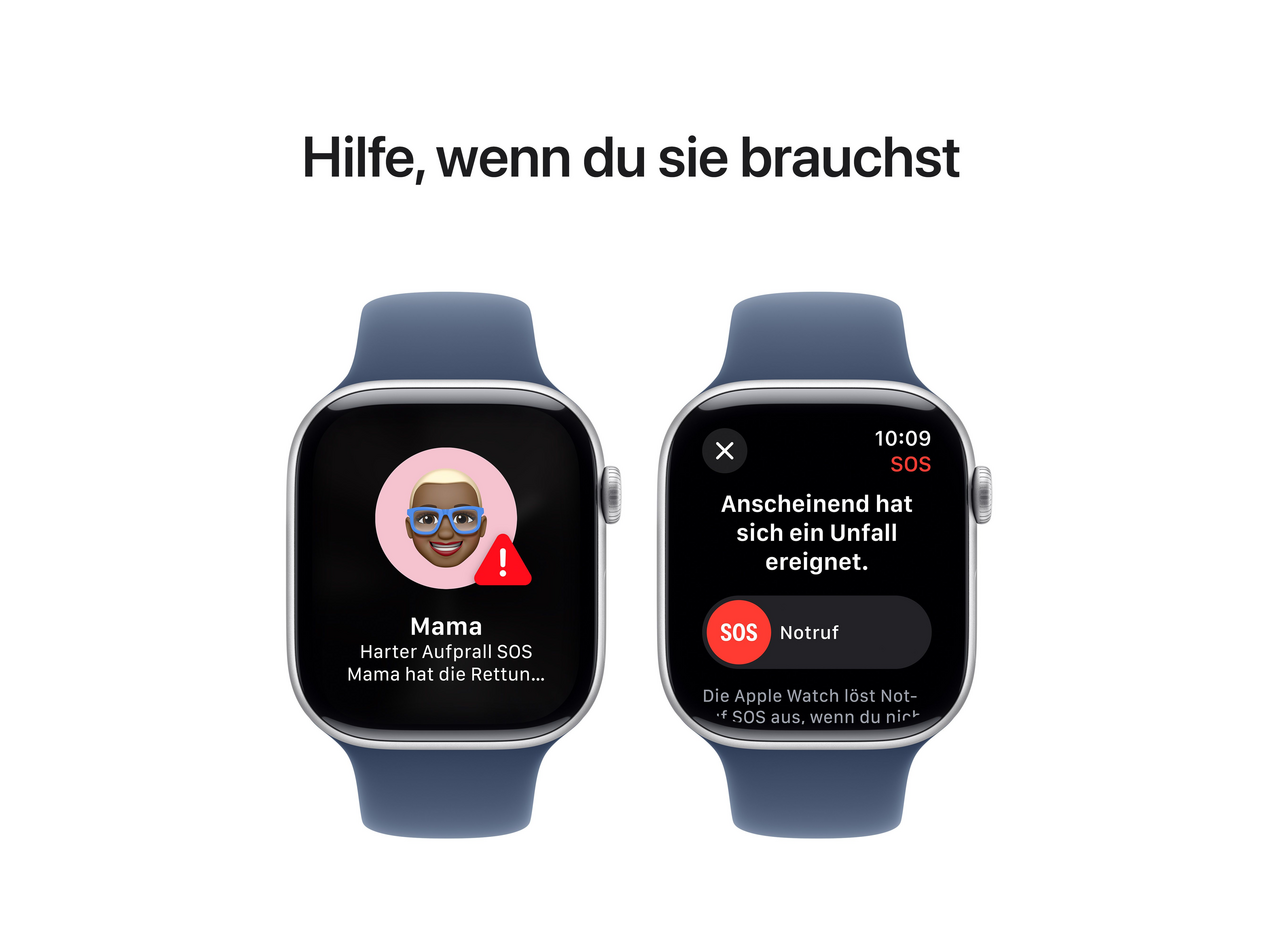 INNOVATIVE SICHERHEITSFEATURES – Unfallerkennung und Sturzerkennung können bei einem schweren Autounfall oder Sturz einen Notruf absetzen. Mit Notruf SOS reicht ein Knopfdruck, um Hilfe zu rufen. Wegbegleitung benachrichtig automatisch eine Wunschperson, wenn du an deinem Ziel ankommst.