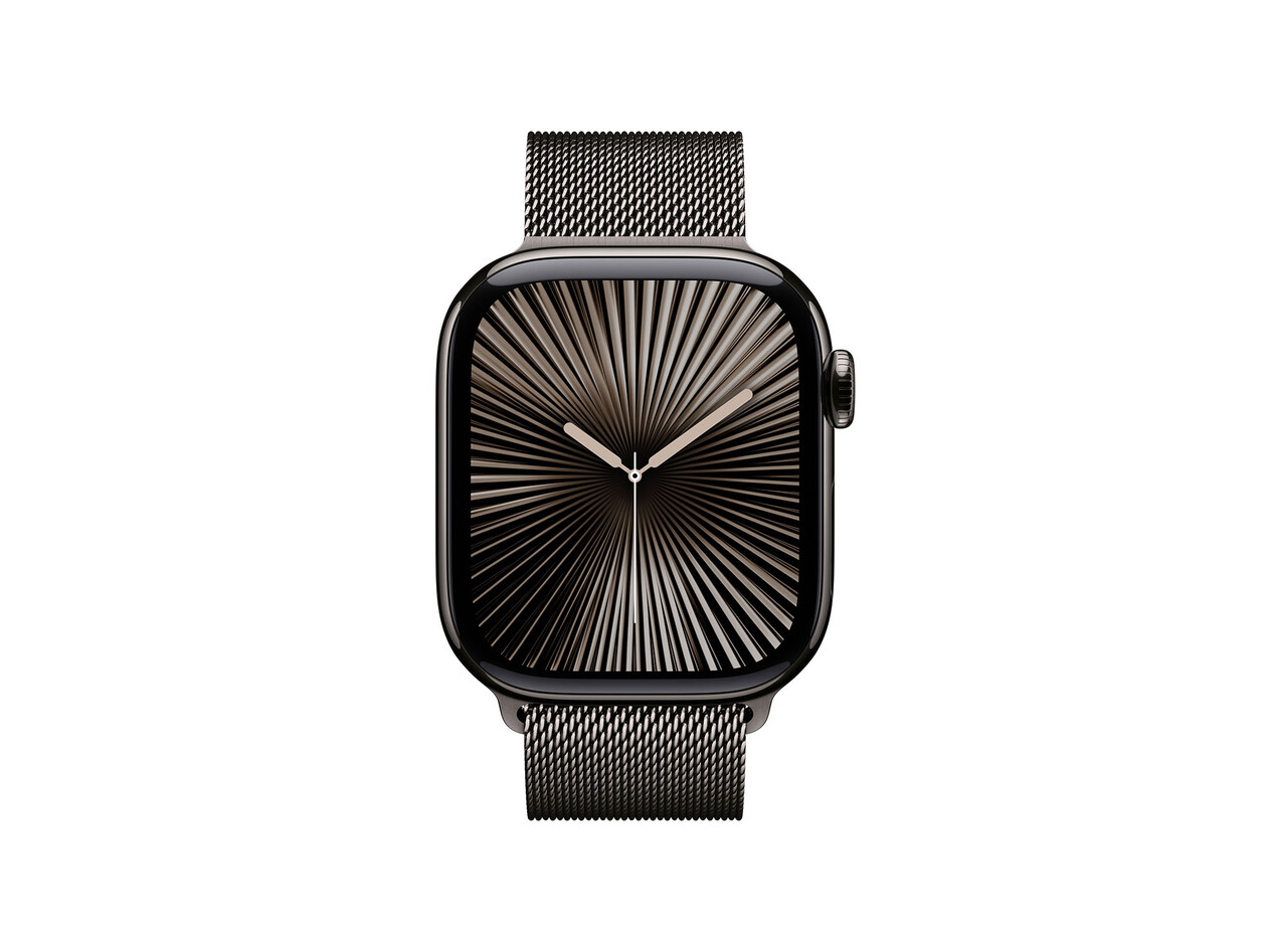 Lieferumfang: Titangehäuse schiefer, Milanaise-Armband, Apple Watch magnetisches Schnellladegerät auf USB-C Kabel (1m)