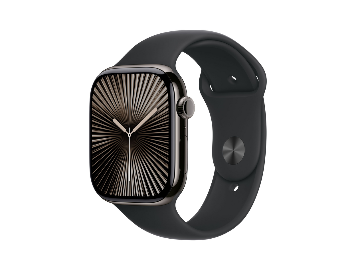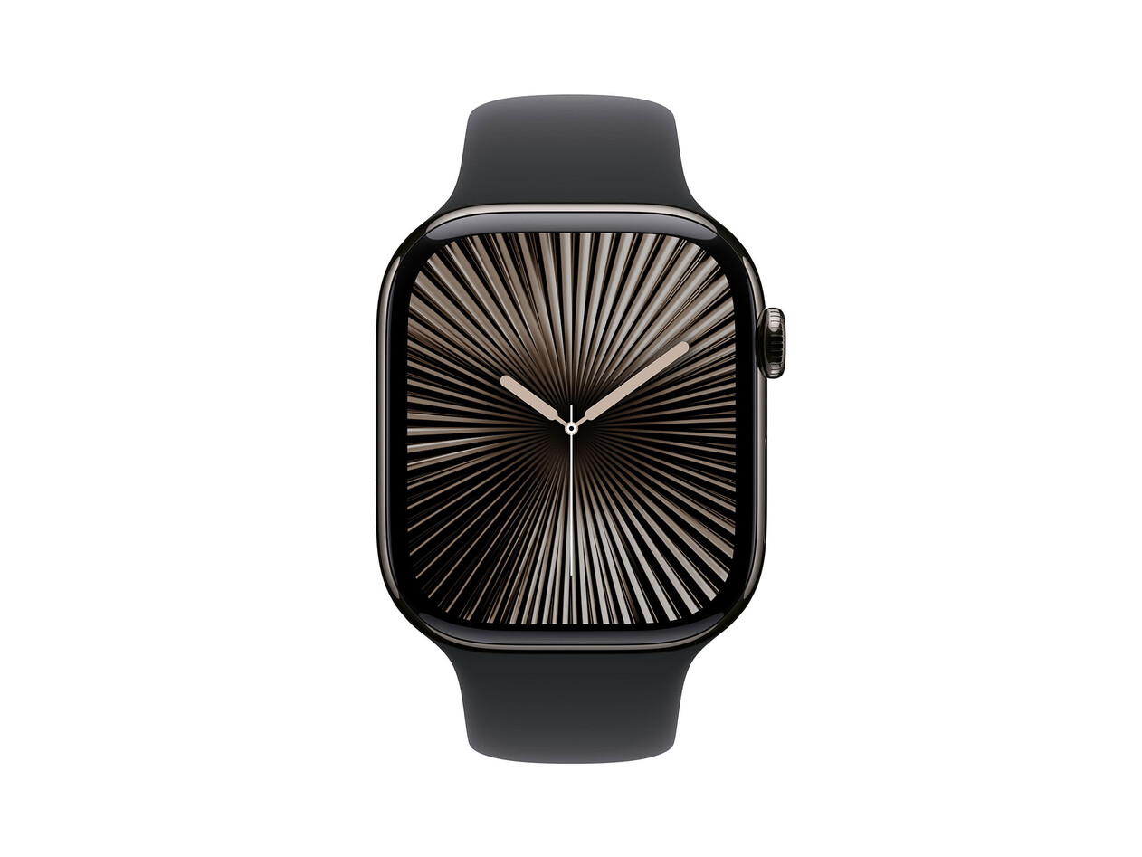 Lieferumfang: Titangehäuse schiefer, Sportarmband (M/L), Apple Watch magnetisches Schnellladegerät auf USB-C Kabel (1m)