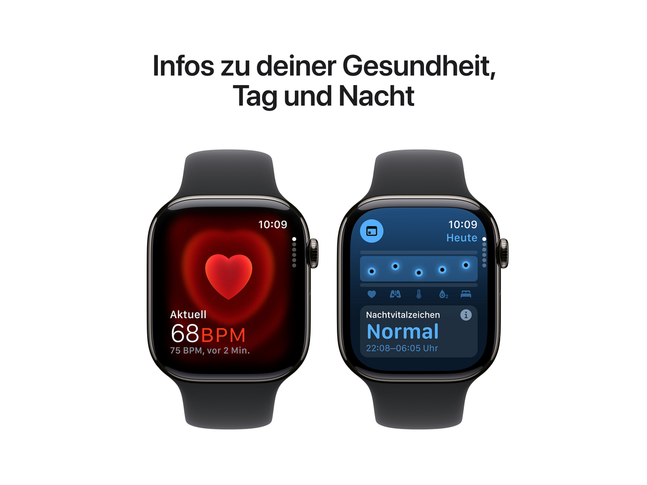 MEHR INFOS ZU DEINER GESUNDHEIT – Mach jederzeit ein EKG. Erhalte Mitteilungen bei hoher und niedriger Herzfrequenz oder bei unregelmäßigem Herzrhythmus. Verstehe deinen Zyklus und erhalte rückblickende Ovulationsschätzungen?. Schau dir über Nacht erfasste Gesundheitsdaten wie Herzfrequenz, Atemfrequenz und mehr in der Vitalzeichen App an. Verfolge deinen Schlaf und erhalte Mitteilungen, wenn Anzeichen von Schlafapnoe erkannt werden.