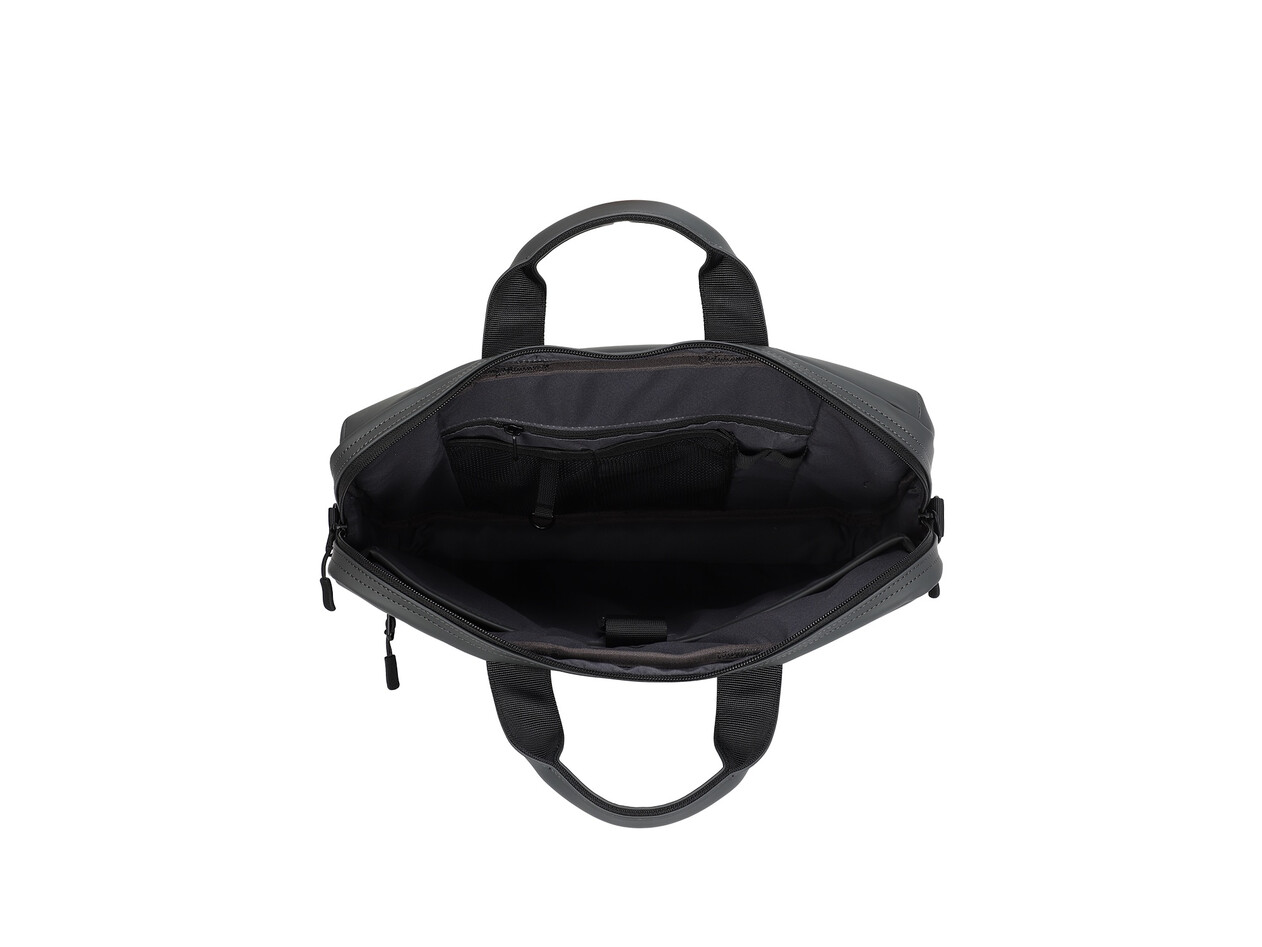 Hergestellt aus ICON-Material: Soft-Touch, schmutzabweisend, kratzfest und leicht abwischbar -GRS-zertifiziertes, recyceltes Kunststoffmaterial und zu 100 % recycelbar - Vordere und hintere Reißverschlusstaschen für schnellen Zugriff und sichere Aufbewahrung - Spritzwassergeschützte Materialien zum Schutz Ihrer wichtigsten Utensilien vor den Elementen - Bequem, Abnehmbarer Schultergurt für freihändiges Tragen - Spezielles MacBook-Fach für sicheren Schutz des Geräts - Geräumiges Hauptfach und kleinere Innentaschen für alle wichtigen Arbeitsutensilien.