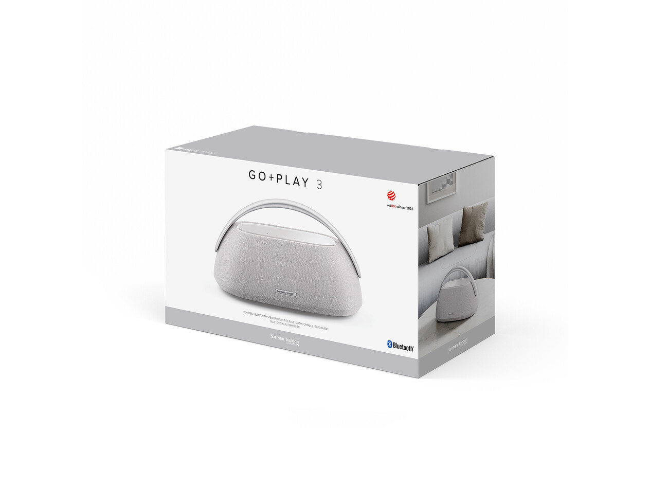 Schlankes Design und hervorragender Klang – drinnen oder draußen. Mit seiner raffinierten Silhouette, massivem, hochwertigem Aluminium Griff und Touchpanel aus gehärtetem Glas, sieht der Harman Karton Go+Play 3 wunderschön aus und klingt noch besser. Es passt sich automatisch an seine neue Umgebung an, sodass Ihre Musik immer am besten klingt. Der eingebaute 8-Stunden-Akku reicht für einen ganzen Arbeitstag. Dank der integrierten Doppelmikrofone werden Sie beim Anruf in einer Konferenz laut und deutlich gehört. Lust auf noch mehr? Koppeln Sie zwei Go + Play 3 für Ihre nächste Party.