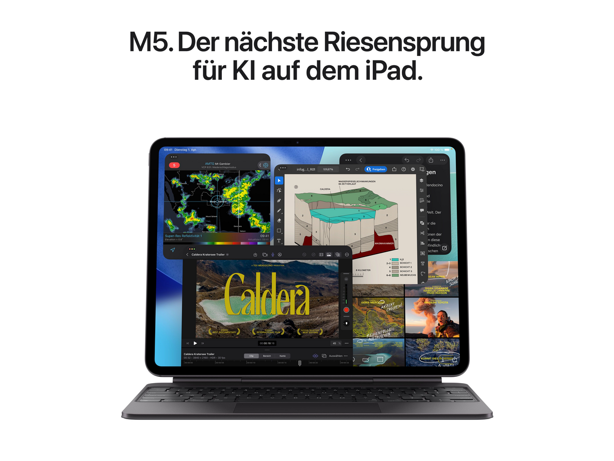 iPad Pro. Entwickelt für Apple Intelligence. Das iPad Pro mit der Power des Apple M5 Chip liefert eine unfassbare Performance für mehr Produktivität und fortschrittliche KI Workflows. Dank des brillanten Ultra Retina XDR Displays, superschnellem WLAN 7, Neural Accelerators für KI Workloads und überarbeitetem iPadOS gibt es für das iPad Pro keine Limits. Zusammen mit dem Apple Pencil Pro und dem Magic Keyboard für das iPad Pro ermöglicht es dir grenzenlose Vielseitigkeit, Kreativität und Produktivität.