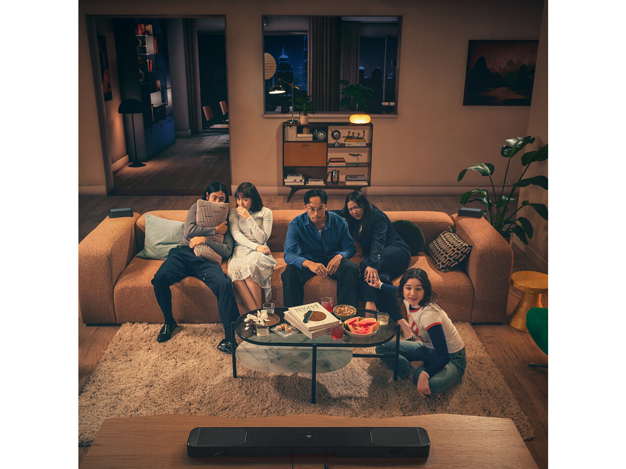 Starte dein Kino-Sounderlebnis in Sekundenschnelle. Sound, der mithilfe von Dolby Atmos® und DTS:X deinen gesamten Raum in ein lebendiges, immersives Raumklangerlebnis in 3D hüllt, das du an jeden Moment anpassen kannst. Nimm einfach die abnehmbaren kabellosen Lautsprecher von beiden Enden der JBL BAR 1300MK2 Soundbar ab und verteile sie um deinen Sitzplatz. Stelle sie weit auseinander für Filmabende mit der Familie beim neuesten Actionfilm oder näher zusammen für eine kuschelige und romantische Playlist, ausgewählt aus Hunderten von verfügbaren Streaming-Diensten.