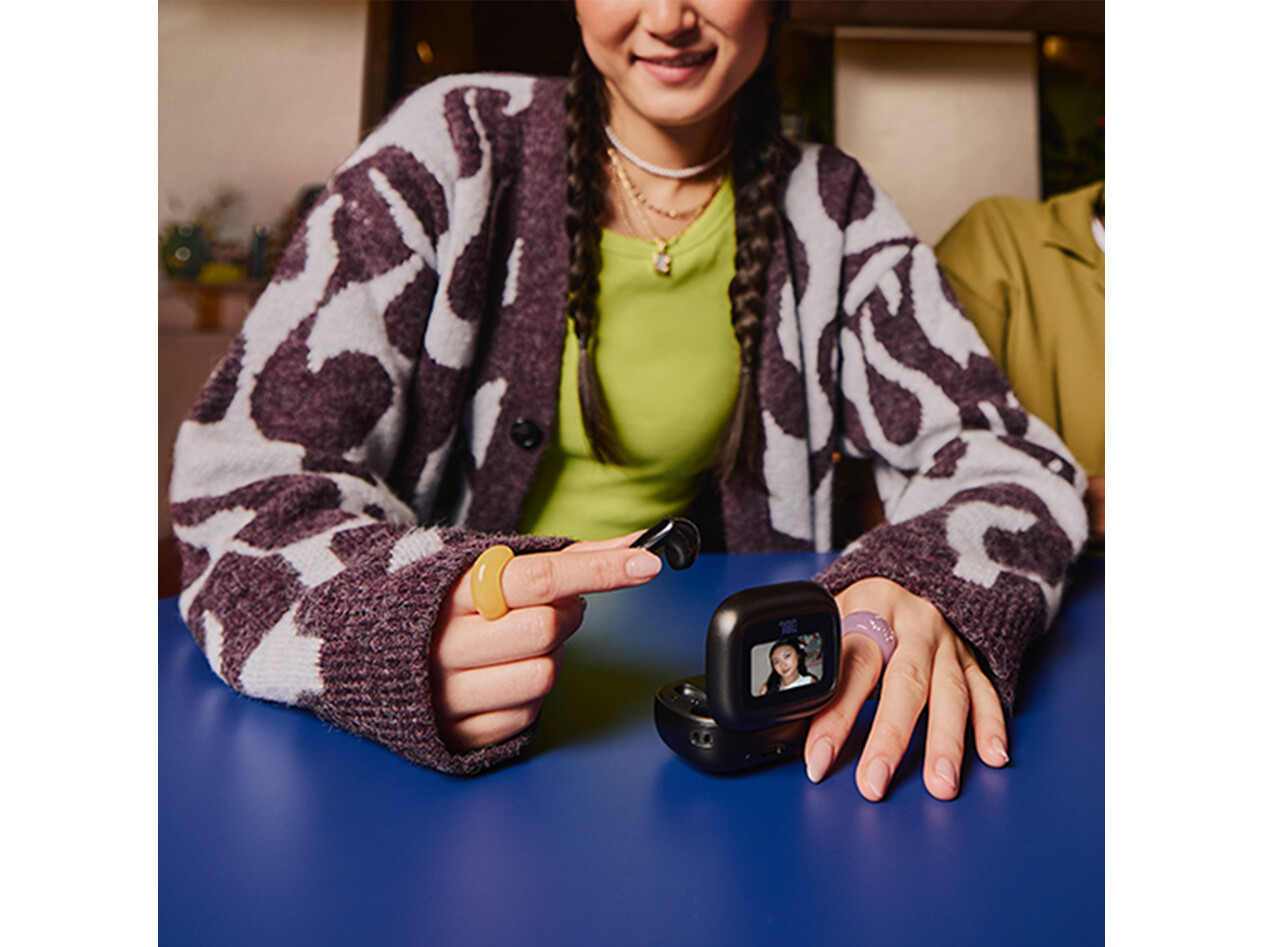 Erhalte individuellen Sound, ohne auf dein Telefon zu schauen. Nutze die Steuerung an dem Smart Charging Case der kabellosen Noise-Cancelling-Ohrhörer JBL Live Flex 3 mit Open-Stick-Design und Hi-