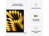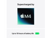15,3 Liquid Retina Display (38,91 cm Diagonale), 2880 x 1864 native Auflösung bei 224 ppi; 500 Nits Helligkeit; 1 Milliarde Farben, Großer Farbraum (P3), True Tone Technologie; Apple M4 Chip; 10-Core CPU mit 4 Performance-Kernen und 6 Effizienz-Kernen, 10-Core GPU, Hardware beschleunigtes Raytracing, 16-Core Neural Engine, 120GB/s Speicherbandbreite; Hardware-beschleunigtes H.264, HEVC, ProRes und ProRes RAW; Bis zu 18 Std. Video-Streaming, Bis zu 15 Std. drahtloses Surfen, Lithium-Polymer-Batterie mit 66,5 Wattstunden; 3,5 mm Kopfhöreranschluss, MagSafe 3 Ladeanschluss; zwei Thunderbolt 4 (USB-C) Anschlüsse mit Unterstützung für: Aufladen, DisplayPort, Thunderbolt 4 (bis zu 40 Gbit/s), USB 4; Beleuchtetes Magic Keyboard; WLAN 6E (802.11ax), Bluetooth 5.3; 1080p HD Videoaufnahme, 12MP Center Stage Kamera; 6-Lautsprecher-Soundsystem mit Tieftönern mit Kräfteausgleich
