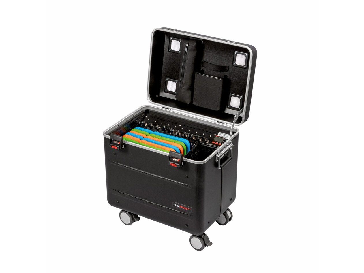 Lieferumfang: 1x ParaProject Case i10, 10x USB Daten- und Ladekabel auf USB-C mit LED-Anzeige, 1x Geräteanschlusskabel, EU, Länge: 5 m, 1x Bedienungsanleitung für Zahlenschloss