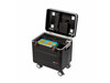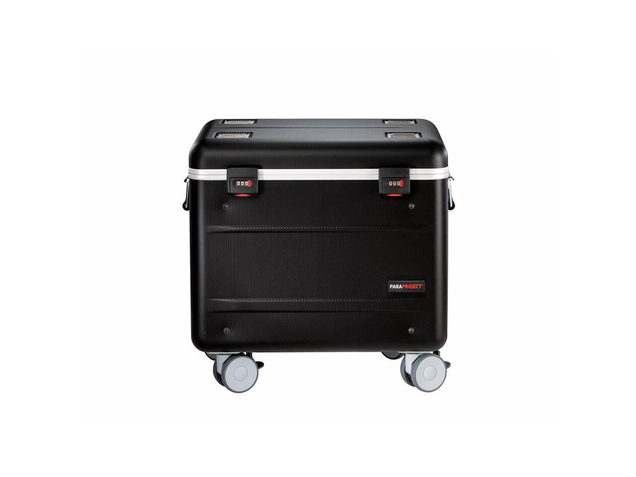 Als Lösung für iPad-Klassen im Grund- und Vorschulalter hat sich der intelligente PARAPROJECT® Case i10, EDUCOVER®+/KidsCover etabliert. Die sensiblen Tablets finden Schutz in den kinderfreundlichen KidsCover-Tablethüllen. Diese bestehen aus robustem ABS-Kunststoff und sind in den Farben blau, orange, grün und schwarz erhältlich. Dank des in der Hülle integriertem Tragegriffes können Kinderhände Tablets sicher transportieren. Zudem schützt die schlagzähe Hülle das Tablet, sollte es doch mal zu Boden fallen. Der mobile PARAPROJECT® Case i10, EDUCOVER®+/KidsCover bietet Raum für bis zu 10 iPad in der cleveren KidsCover-Hülle. Zudem lädt und synchronisiert er diese über die zentrale Lade- und Sync-Einheit in optimaler Geschwindigkeit. Seine in Reihe positionierten USB-Anschlüsse ermöglichen ein sauberes Kabelmanagement. Seitlich montierte Griffe erleichtern das Tragen, Zahlenschlösser schützen vor unbefugtem Zugriff. Sein geringes Gewicht in Kombination mit dem 4-Rollen-Konzept „EasyMove" und dem bis zu einem Meter ausziehbaren Teleskopgriff, machen das Handling des Koffers besonders angenehm. Die strapazierfähige schwarze Aussenhülle aus X-ABS Kunststoff im Aluminiumrahmen, schützt sicher vor äußeren Einwirkungen. Er ist kompatibel mit allen iPad Generationen ab 4 Air und mini.