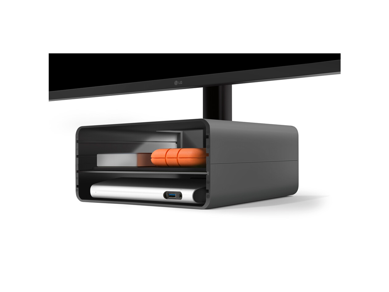 - Interner Stauraum, um Hubs, Festplatten, persönliche Gegenstände oder überflüssige Kabel zu verstecken