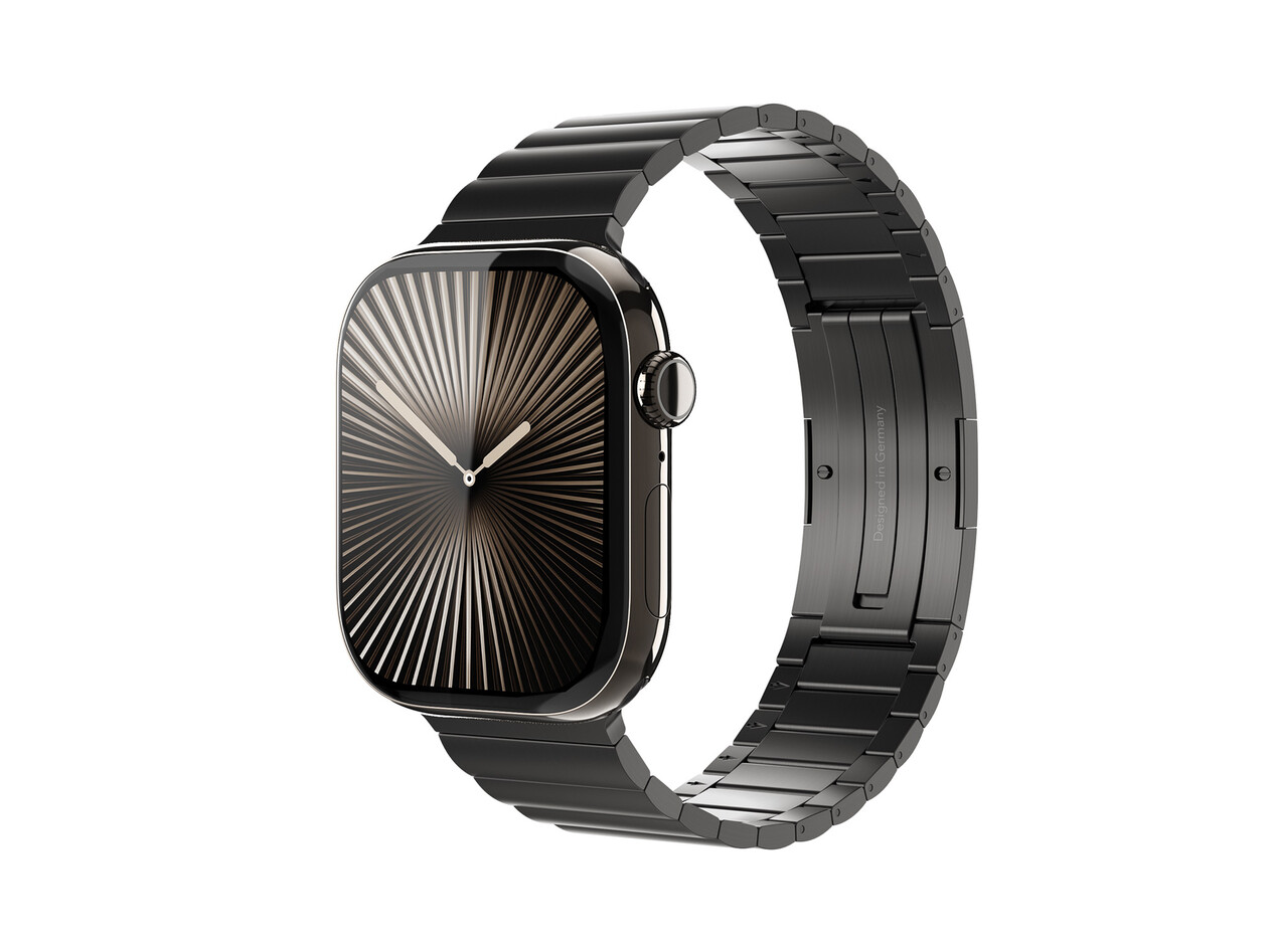 Link Bracelet Pro ist gemacht für alle, die kompromisslose Qualität, luxuriöses Design und höchste Präzision schätzen. Gefertigt aus hochwertigem 316L-Edelstahl mit 25% Recyclinganteil, verbindet das Armband klare Ästhetik mit außergewöhnlicher Robustheit. Das Band präsentiert sich in einem gebürsteten Edelstahl-Finish, die präzise polierten Seitenflächen greifen das Hochglanz-Finish der Apple Watch auf und schaffen einen nahtlosen Übergang zwischen Uhr und Armband. Die moderne Schließe fügt sich nahtlos ins Design ein und sorgt für sicheren Halt mit elegantem Look. Jedes einzelne Glied ist aufwendig PVD-beschichtet und zusätzlich mit einer Diamond-Like-Carbon-Veredelung (DLC) versehen – für ein Finish mit diamantähnlicher Härte – extrem widerstandsfähig und dauerhaft makellos. Dank beiliegendem Tool lässt sich das Armband einfach anpassen – für einen Sitz, der so kompromisslos ist wie das Design.
