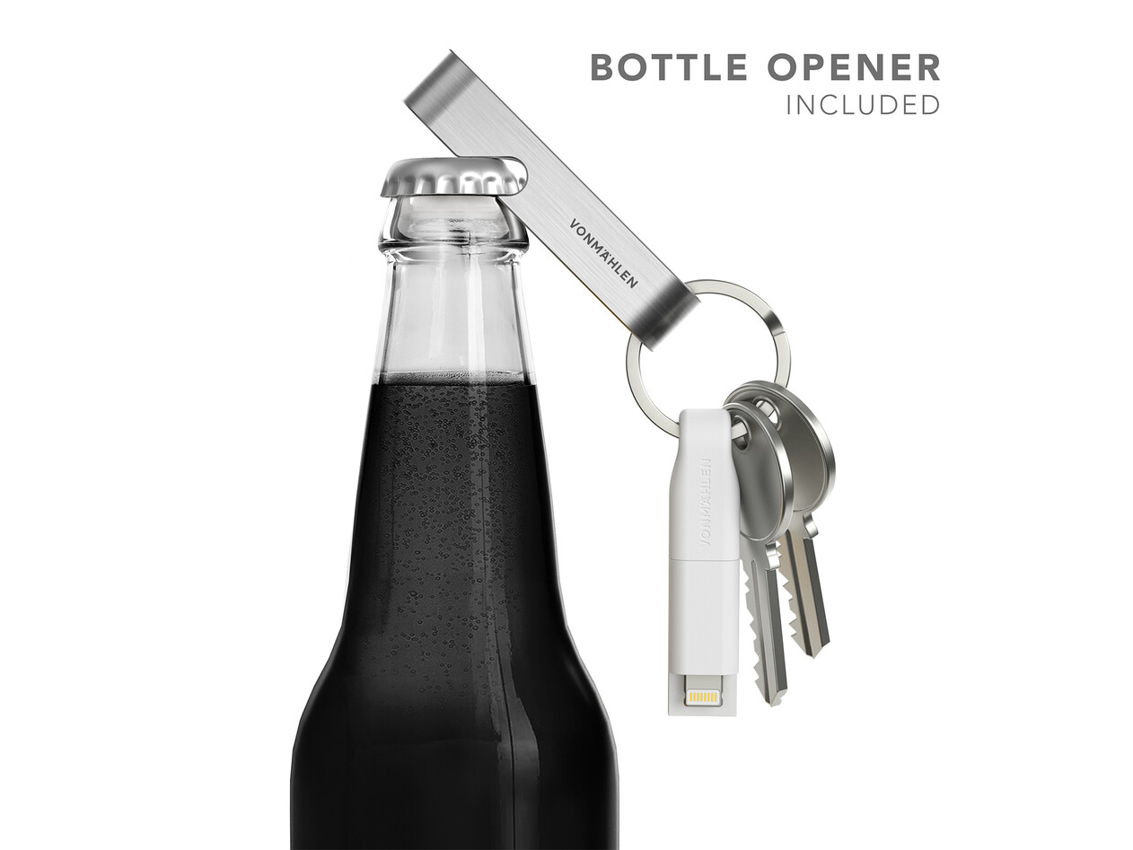 High Six ist das 6in1-Schnellladekabel (bis zu 3A) von Vonmählen und verfügt über einen integrierten Flaschenöffner. Designt für den Schlüsselbund und mit sechs verschiedenen Kombinationsmöglichkeiten bietet High Six immer die richtige Verbindung zum Laden aller Endgeräte. High Six ist einfach und schnell an jedem Schlüsselbund zu befestigen, jederzeit einsatzbereit und somit die ideale Lösung für On-The-Go.