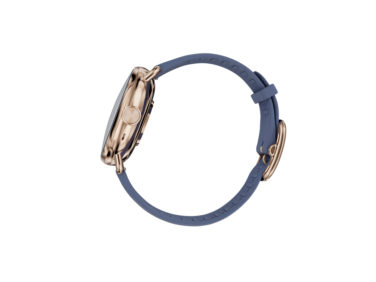 Lieferumfang: ScanWatch 2 38mm RG blau, FKM-Armband mit Edelstahlschnalle, Docking-Station, inklusive USB-C-auf-USB-A-Kabel, Installationsanleitung, Produkthandbuch