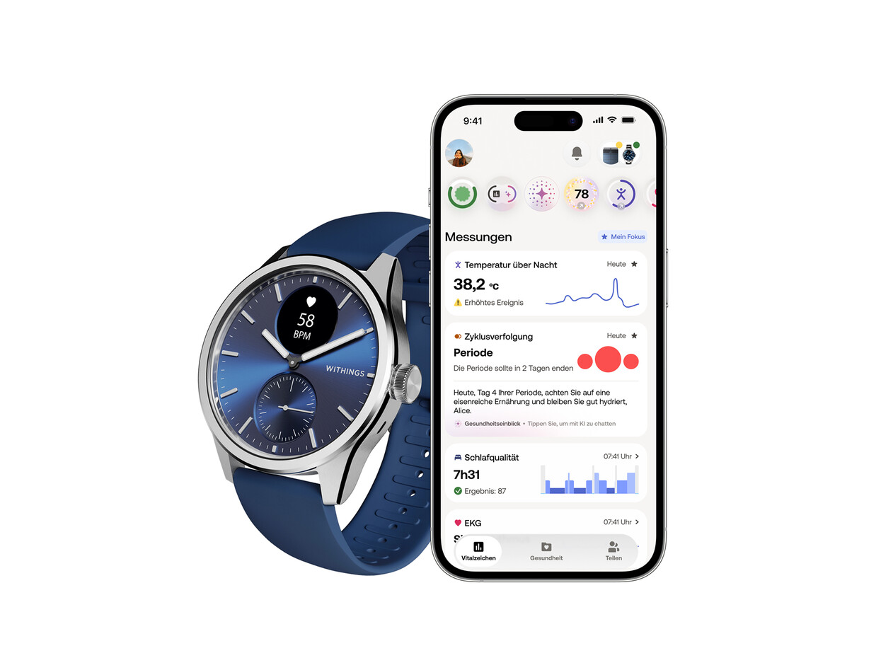 ScanWatch 2 ist eine hochmoderne Hybrid Smartwatch mit brandneuer, hochmoderner Technologie, einschließlich einer Funktion zur kontinuierlichen Erfassung von Körpertemperaturschwankungen.