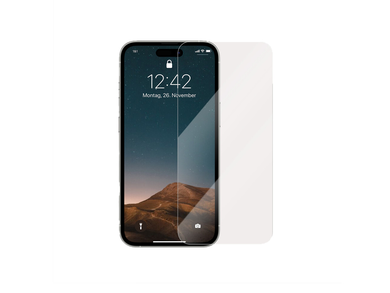 Ultrahartes iPhone Schutzglas aus gehärtetem 9H Panzerglas. Die passgenaue Schutzfolie ist selbstklebend, kratzfest und dank oleophober Beschichtung auch abweisend gegen Schmutz und Fingerabdrücke. Glasklare HD Transparenz ermöglicht alle gewohnten iPhone Funktionen wie Face ID.