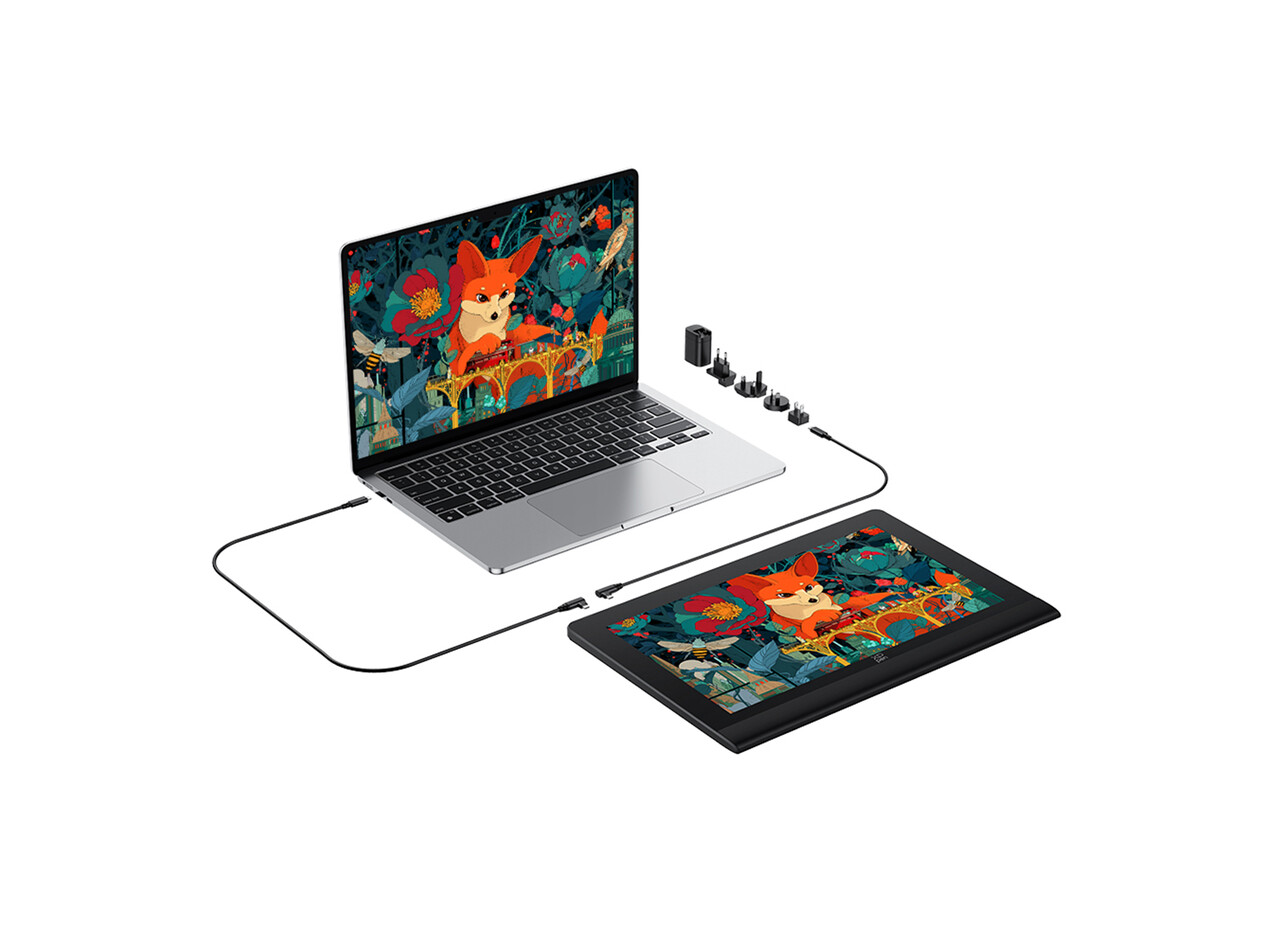Lieferumfang: 1x XPPen Artist Ultra 16, 1x X3 Pro Smart Chip Stylus & X3 Pro Schlankstift, 1x Stifthülle mit Ersatzspitzen, 1x ACK05 Shortcut-Fernbedienung, 1x AC16S Standfuß, 1x 3-in-1 Kabel, 1x USB-C zu USB-C Kabel